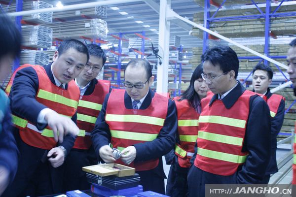 隨后,潘董事長一行與公司劉董事長等高層領導進行了親切友好的座談。座談結束后,考察組一行在劉董事長的陪同下,前往江河幕墻建成并投產的全球幕墻行業最大的單體幕墻制造工廠。在國際一流、國內領先的現代化工廠內,潘董事長一行細致考察了江河幕墻行業領先的技術設備、倉儲車間、自動化流水線及成品包裝養護等,對部分江河幕墻獨創的技術工藝進行了仔細詢問并觀看了技術人員的現場精密測試。參觀過程中,潘董事長屢次對江河幕墻的工廠布局、技術設備、制造工藝等展露出贊賞的笑容。